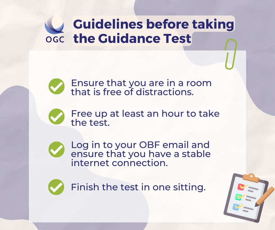 Please take note of the new ONLINE GUIDANCE TESTING DEADLINE: 8 Sept 2023.