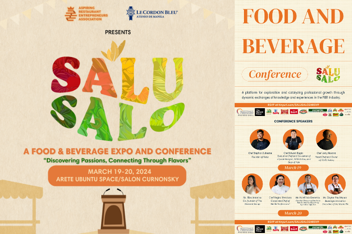 This 19-20 March 2024, the Aspiring Restaurant Entrepreneurs Association (AREA) will be holding its flagship event, SALUSALO: Discovering Passions; Connecting Through Flavors. The event is a career-building initiative in partnership with Le Cordon Bleu Ateneo de Manila that aims to empower career aspirants in the food and beverage industry.