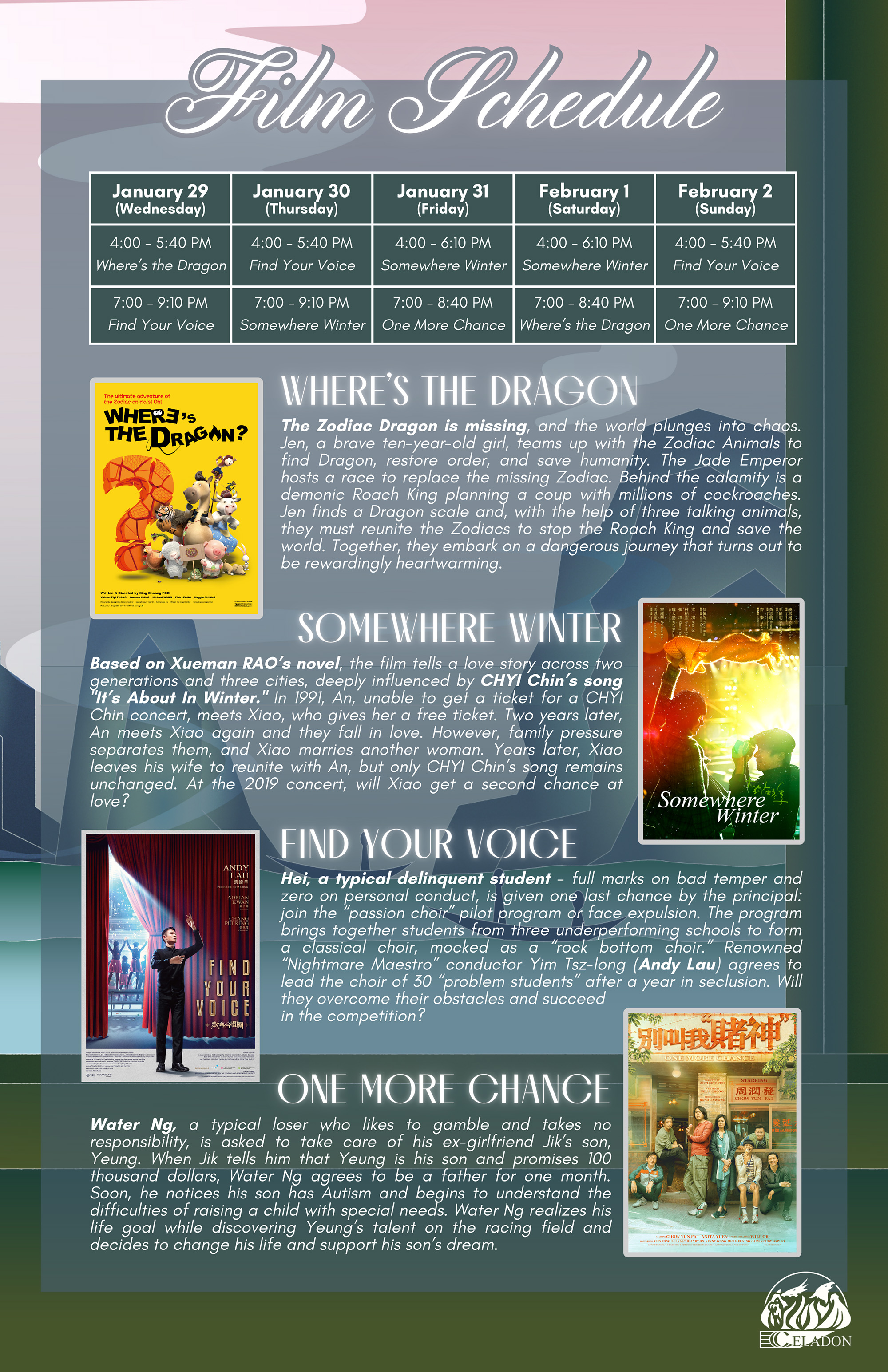 As the Spring Film Festival (SFF) Celebrates its nineteenth year, guests can once again look forward to another set of carefully curated Chinese films. Aside from watching these films, the 19th SFF promises dragon and lion dances calligraphy workshops, and several stunning performances that should not be missed!
