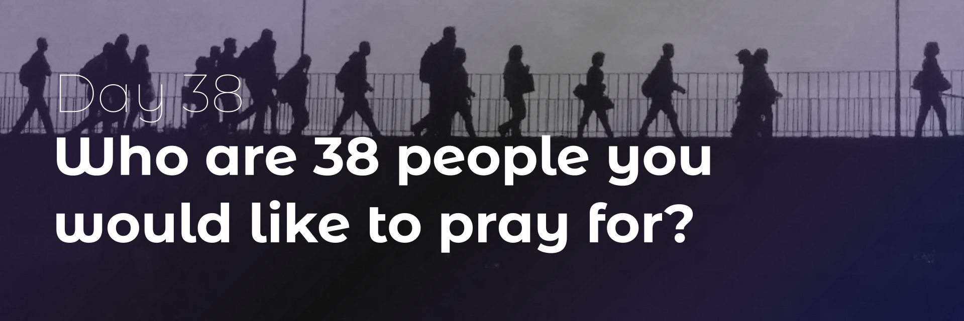 Sa pagpapatuloy natin sa panahon ng Kuwaresma, maaari nating piliing maging mas malay sa mga tao sa ating landas. Sino ang tatlumpu’t walong taong nais mong ipanalangin? Marahil iyong mga malalapit sa puso mo? Iyong nagdulot sa iyo ng mga luha? Iyong mga hindi mo sinasang-ayunan? Iyong mga hinahangaan mo? Iyong nagpapakita sa iyo ng kariktan? Iyong mga nakahahamon sa kung sino ka? Alalahanin at ipanalangin ang bawat isa. At samantalang ginagawa mo ito, nawa magsilbi rin itong paalala ng dakilang puso ni Kristo na yumakap at nagdusa para sa ating lahat.