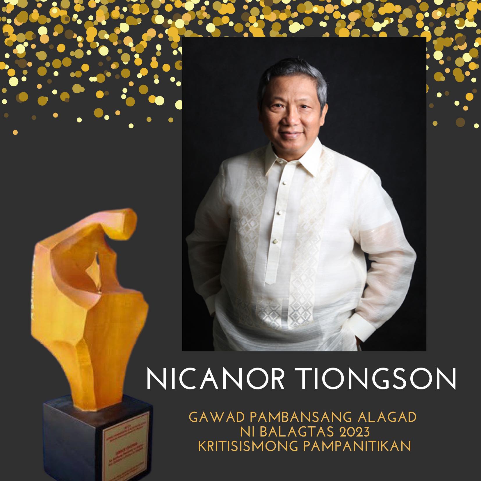 Dr Nicanor G Tiongson, Gawad Pambansang Alagad ni Balagtas 2023