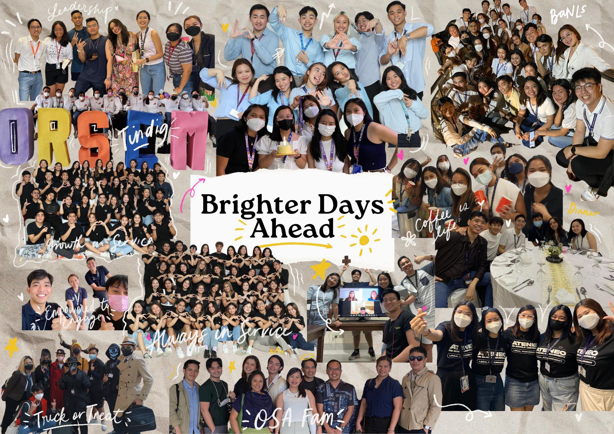 This has been no small feat. We had to be resilient and light-footed. We had to deal with the dreaded CAR Form, the limited capacity of venues for onsite events, a longer trek to the CFMO office, the absence of off-campus activities, and much, much more. But here we are today, celebrating the successes of the year that has been. Of course, none of this would have been possible without the support and guidance of the entire OSA Fam. Taos pusong salamat sa inyong lahat. Kayo ang aming naging katuwang sa lakbay na ito.