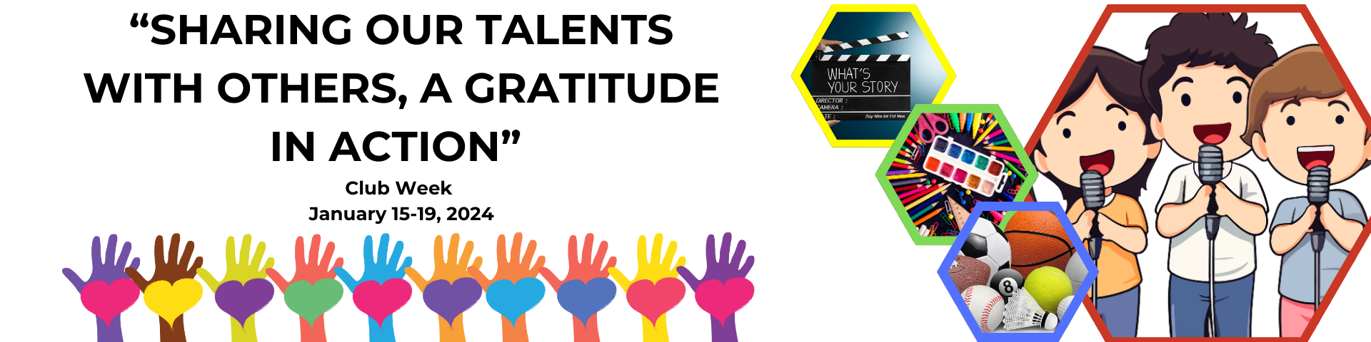 This year’s Club Week Theme is “Sharing our Talents with Others is A Gratitude in Action.” This suggests not only the nurturing of our students’ talents but also their conscious effort to share their talents with others. This act of sharing becomes a tangible manifestation of their gratitude.