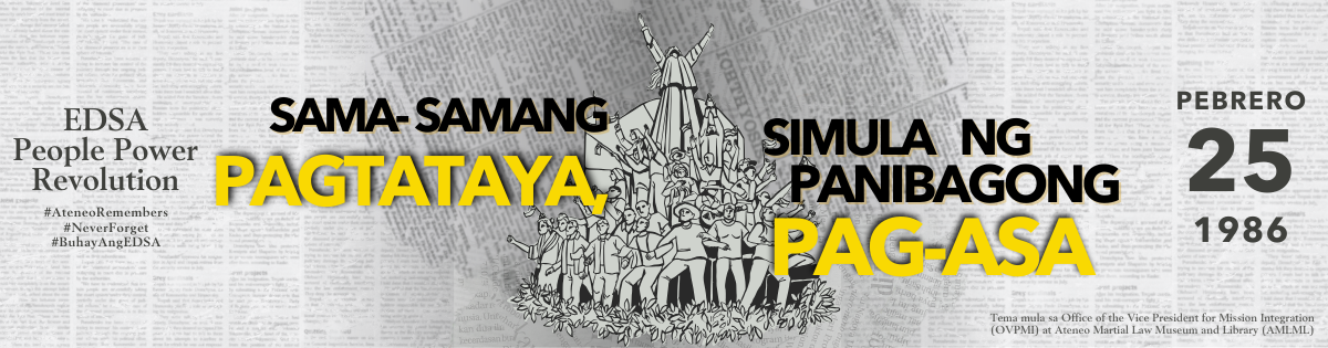 Ngayong taon, gunitain natin ang EDSA sa temang “Sama-Samang Pagtataya, Simula ng Panibagong Pag-asa.” Huwag nating kalimutan ang mahahalagang aral ng EDSA People Power Revolution – ang pagkakaisa, paninindigan, at pananampalataya sa katotohanan. Nasa atin ang kapangyarihang alamin ang tama at ipaglaban ang totoo. Bilang mga Atenista, makiisa tayo sa pagkilos upang manatili ang pag-asa ng mga Pilipino sa pagkakaroon ng maganda at mabuting bansang Pilipinas.