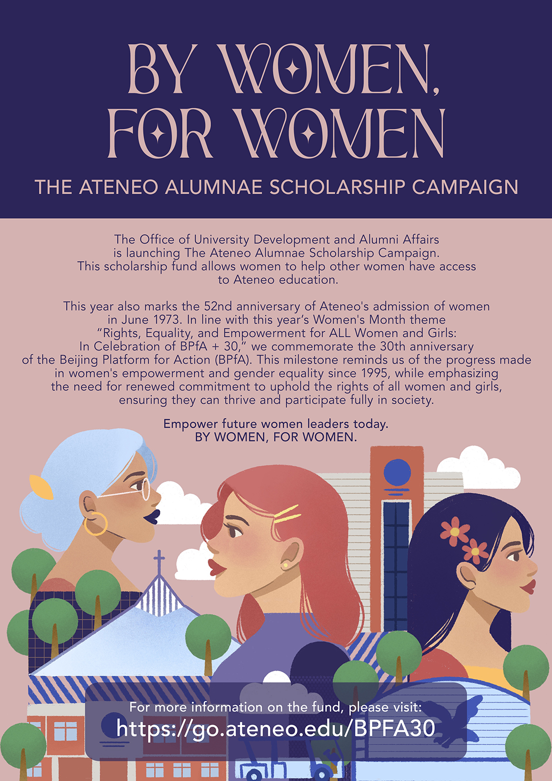 In this 52nd year of co-education, the University appeals to our generous Ateneo alumnae who have walked the storied halls of Ateneo. Here, you have been formed to be persons-for-others, and continued on to change the world for the good. We hope that you can help give other young ladies the same opportunity.