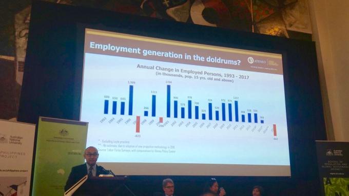 There were concerns, however, raised on the lack of progress in implementing deep structural reforms that could promote a stronger middle class – including the need to advance a domestic manufacturing base that could employ millions of poor and low income Filipinos. Analysis by the Ateneo Policy Center was presented in order to emphasize how job creation has actually regressed according to government data, and that historically, job creation has not matched the credit boom and impressive growth years we have witnessed recently.
