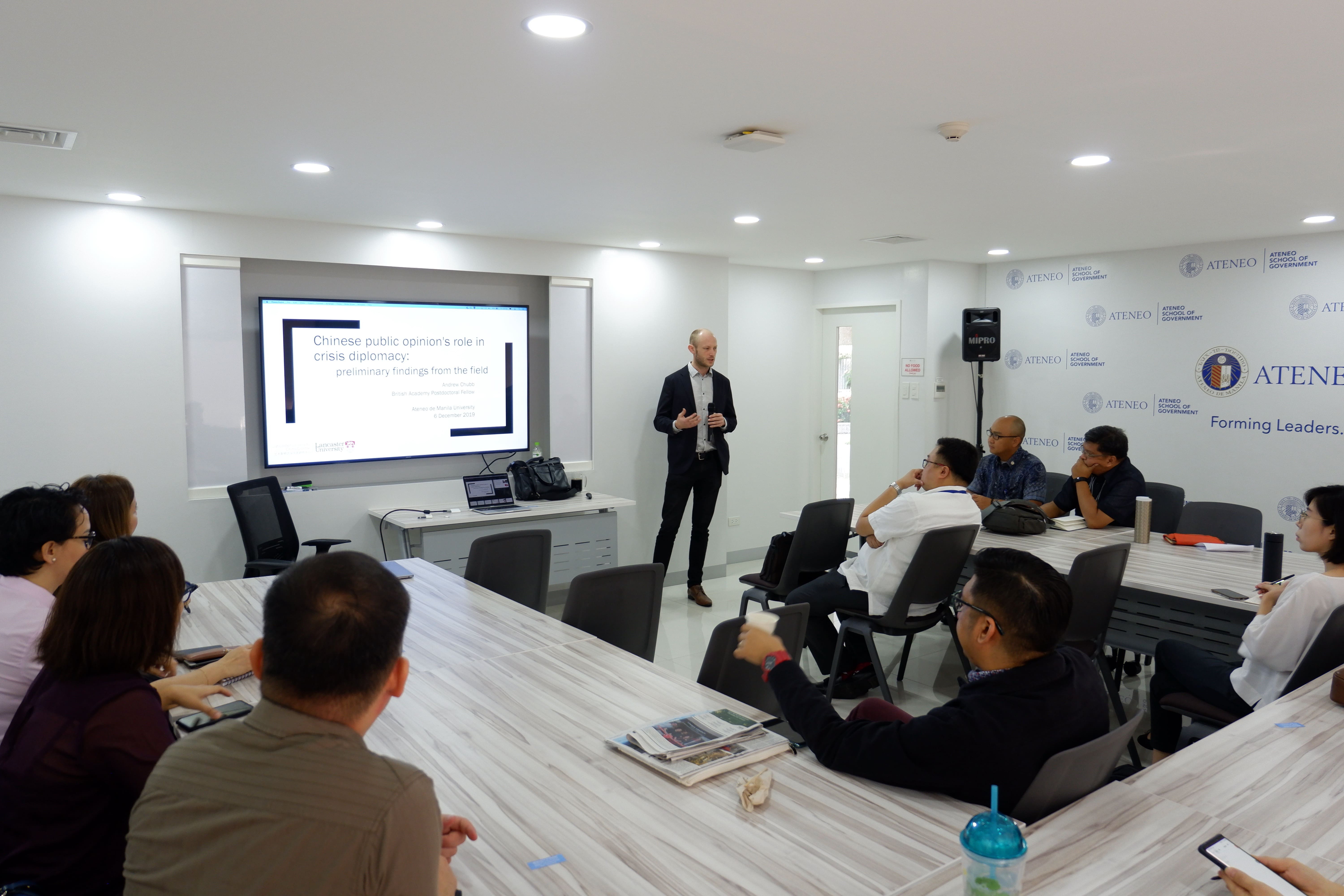 Last December 6, 2019, the Ateneo School of Government hosted the presentation of Dr. Andrew Chubb of Lancaster University. Dr. Chubb delivered his preliminary findings on the role of Chinese public opinion in the crisis diplomacy of the PRC government.