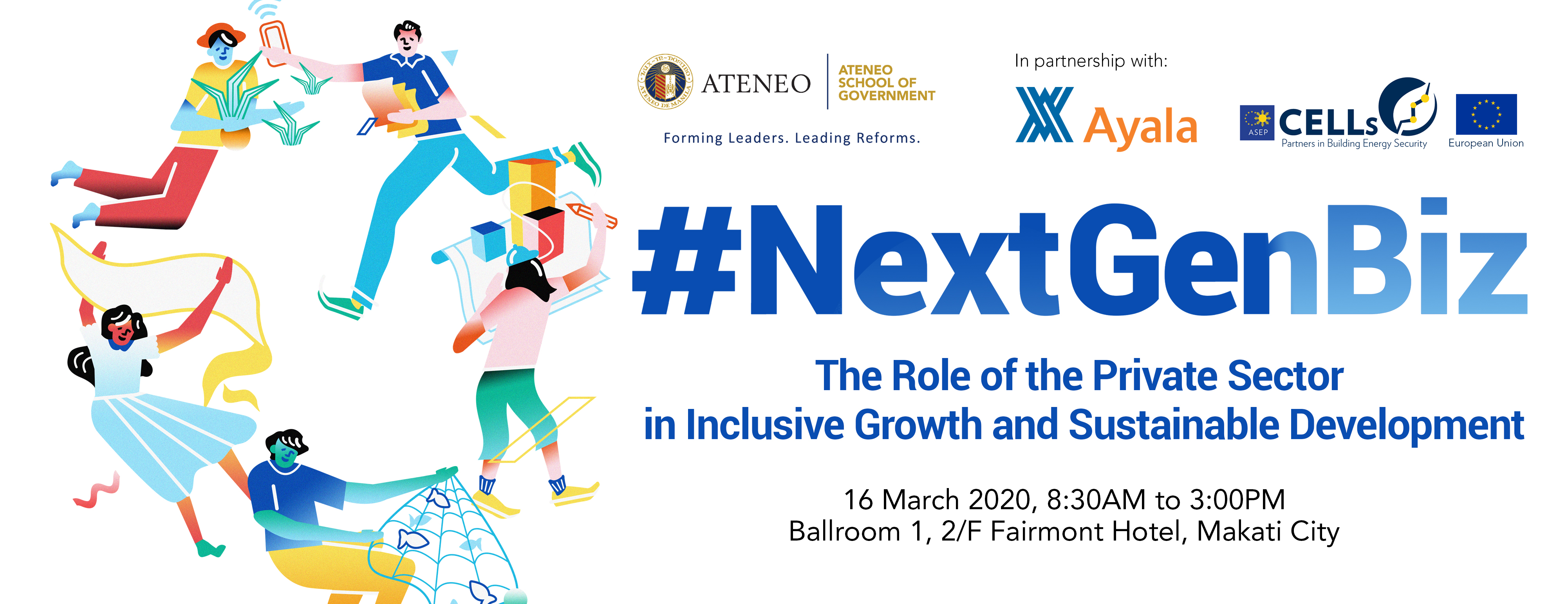As part of ongoing efforts to promote inclusive development in the Philippines, the Ateneo School of Government through the Ateneo Policy Center, in partnership with Ayala Corporation and the European Union through the ASEP CELLs Project will hold a conference titled #NextGenBiz: The Role of the Private Sector in Inclusive Growth and Sustainable Development.