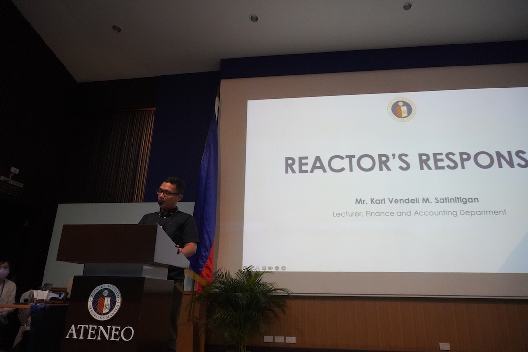 Following Commissioner Lee's presentation, Mr Karl Vendell M Satinitigan, Lecturer from JGSOM's Finance and Accounting Department provided the reactor's response, thanking the commissioner for his presentation. This then led into the lively open forum where students were able to ask questions and discuss some of the topics presented with the group.