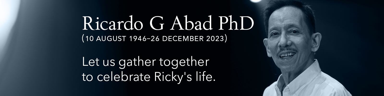 We celebrate his life along with the many people and communities—in theater, social sciences, and other fields—whom Ricky has graced and transformed with his towering passion, courage, and intellect. His family invites guests to join them in prayer online over the next few days, with the public wake and viewing in Ateneo beginning on New Year's Day.