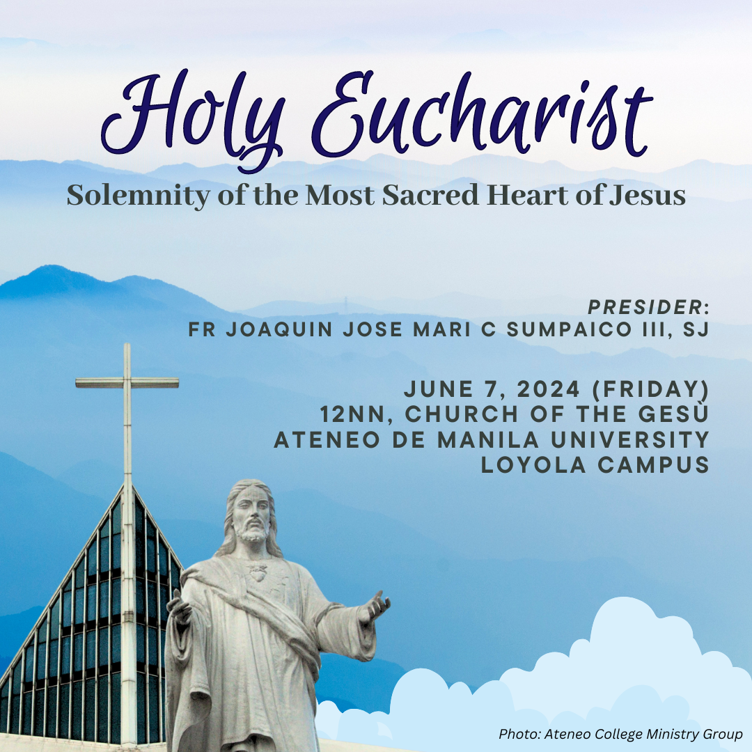 All members of the Ateneo Community are invited to the Holy Eucharist in celebration of the Solemnity of the Most Sacred Heart of Jesus on 7th June 2024 (Friday) 12:00 nn at the Church of the Gesù, Ateneo de Manila University - Loyola Campus.
