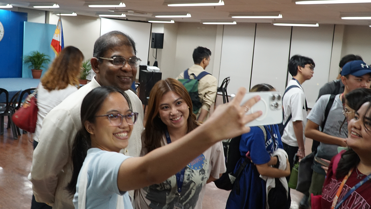 Following the lecture, H E Castelino and the students engaged in a lively open forum with the Ambassador providing insightful answers to the students' questions. Beyond that, before he left, some of the students took time to take photos with the Ambassador.