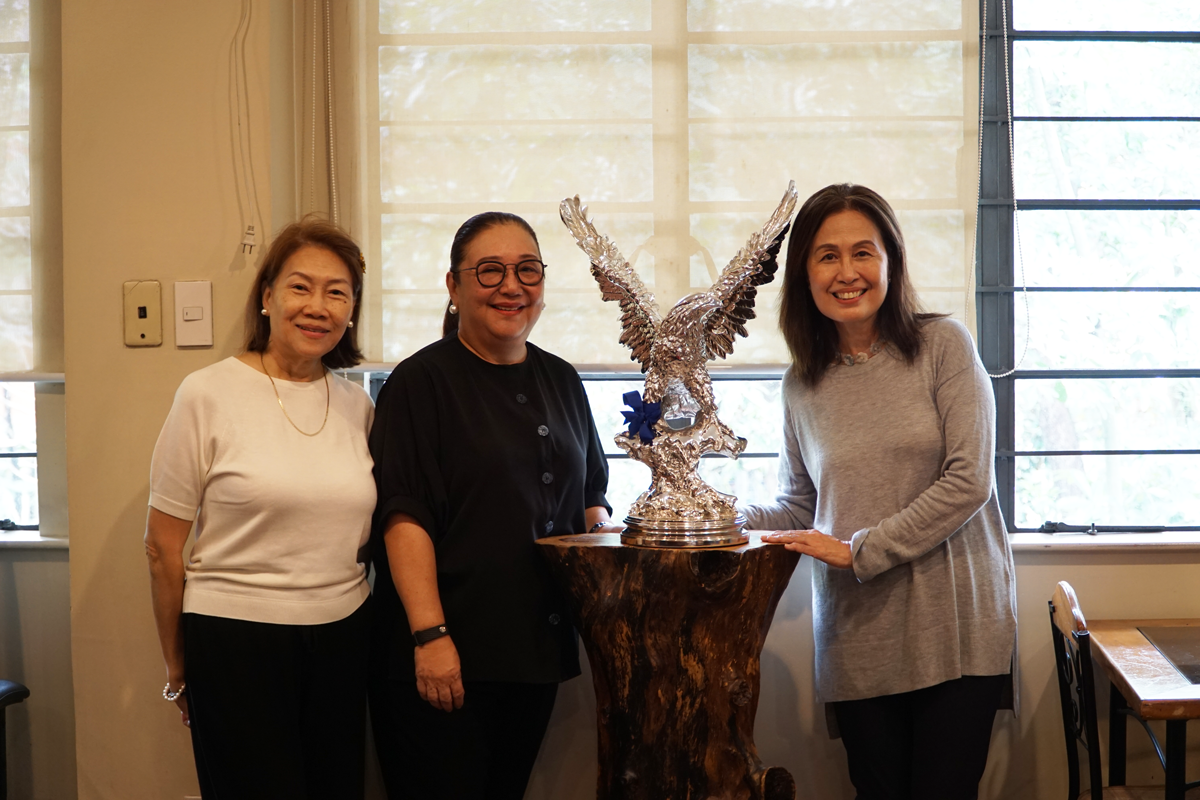 During the meeting, Fr Yap presented Mrs Santos with a token, a Funko Pop! College Blue Eagle figure, as a symbol of the University's gratitude for her donation, as well as a certificate recognizing her contribution. Following the meeting, a simple merienda was served during which Mrs Santos regaled everyone with stories of Arben's life and involvement with the team.