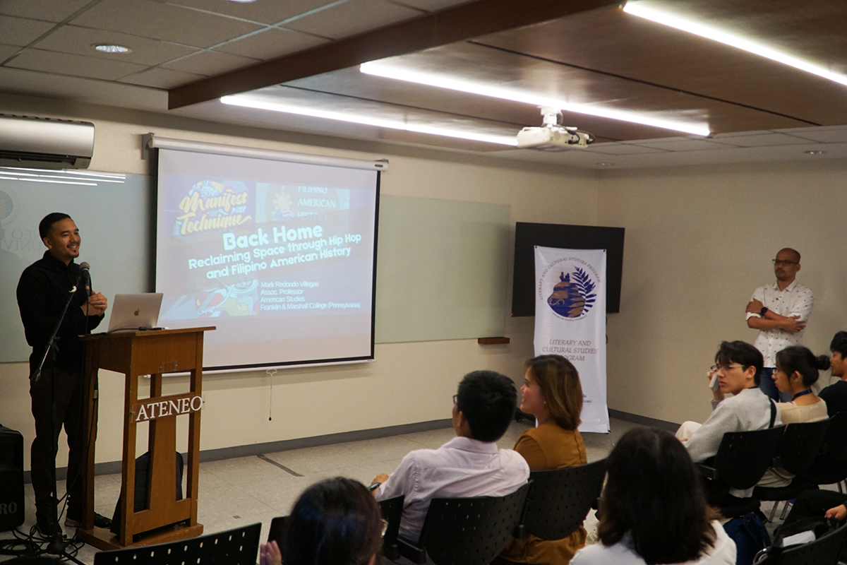 On 9 November 2024, Kritika Kultura, the international peer-reviewed journal of the Ateneo Literary and Cultural Studies Program, hosted a lecture titled "Back Home: Reclaiming Space Through Hip-Hop and American History." Delivered by Dr Mark Redondo Villegas from Franklin & Marshall College in Lancaster, PA, the lecture explored the relationship Filipino Americans have with hip-hop and the concept of "home."