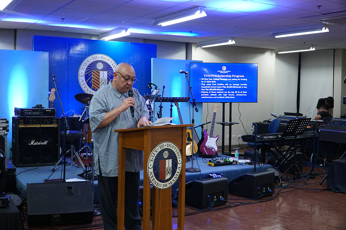 In addition, Karen Joy Perez (AB Sociology ’24), the valedictorian of Ateneo College Class of 2024, also came up to the stage to tell her own story of how Ateneo's scholarship programs, such as YUGTO, helped her in her journey, and how she would not have become the class valedictorian without them.
