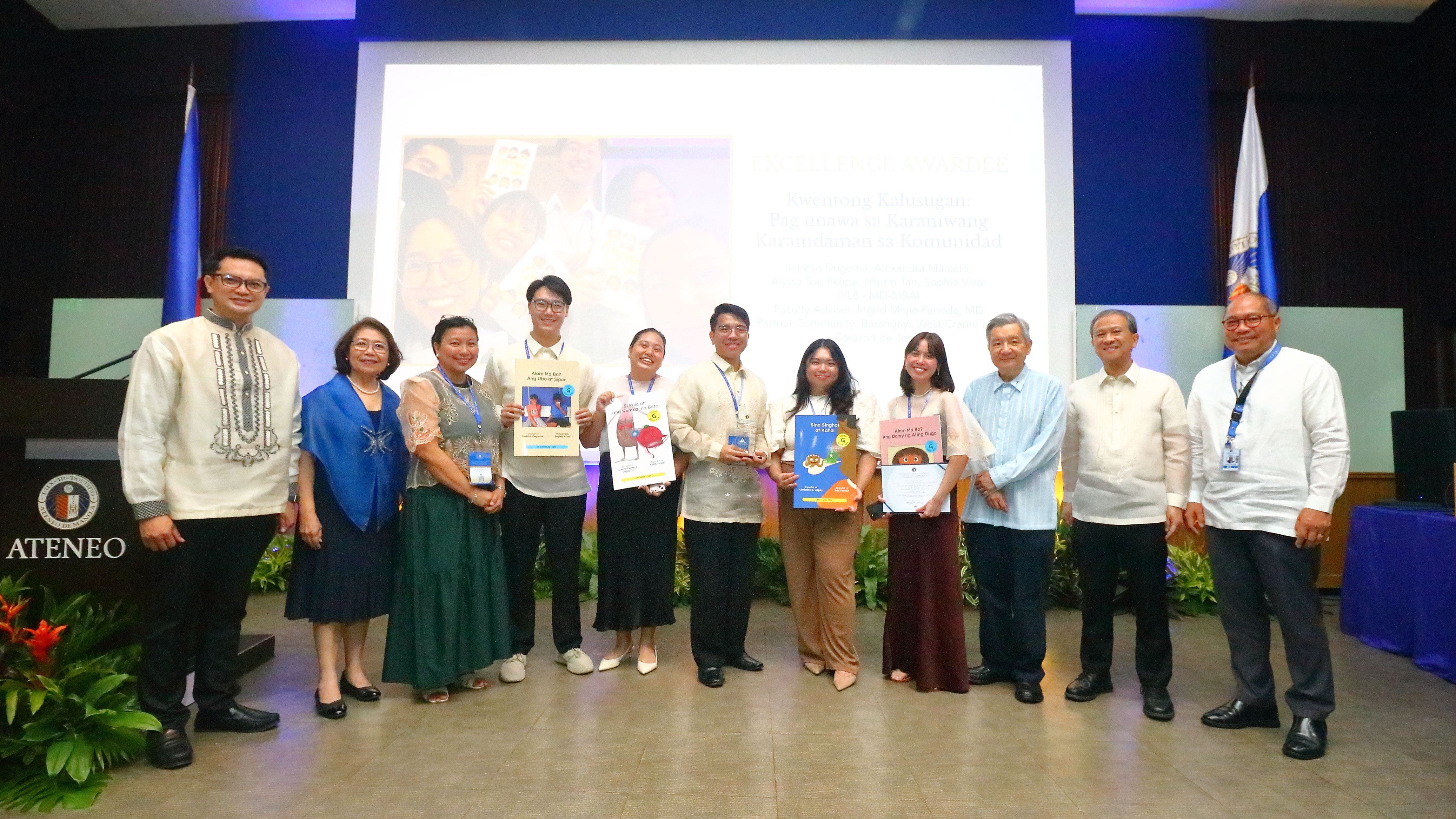 This year’s ASCEND Excellence Award for Postgraduate Coursework Project was awarded to Jericho Dugenia, Alexandra Marcelo, Alyssa San Felipe, Martin Tan, and Sophia Vivar, Year Eight MD-MBA students, for their research entitled, “Kwentong Kalusugan: Pag-unawa sa Karaniwang Karamdaman sa Komunidad.”